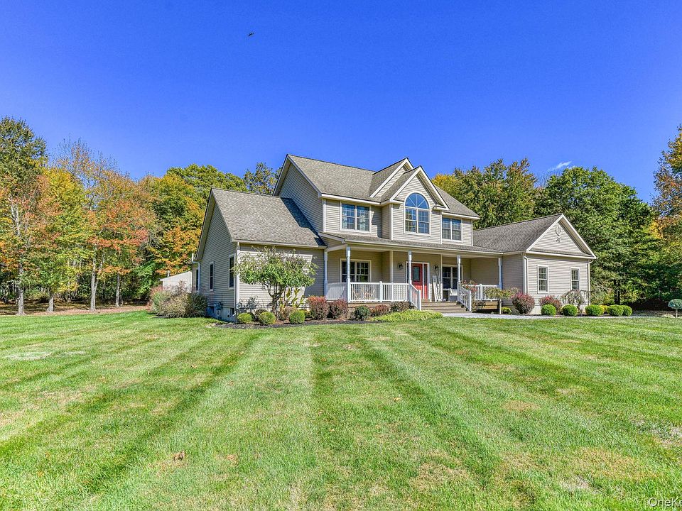 Modern Country Living in the Heart of the Hudson Valley - Walden, NY just minutes to major highways and shopping yet a world away - offering a quiet country oasis with modern conveniences and a sparkling salt water pool. A long and scenic approach to a wooded lot and perfectly set on 4 level acres this well appointed home is designed for comfortable everyday living. Whether you enjoy gardening, keeping bees, raising chickens, or simply relaxing outdoors, this property offers the space and flexibility to live the lifestyle you’ve been dreaming of. Custom built in 2010 by a family of builders, every detail was thoughtfully chosen for quality, comfort, and function. The main level features an ideal layout for modern living, including a first floor primary suite, home office, and laundry room, perfect for ease and accessibility. Upstairs you’ll find two additional ensuite bedrooms and a spacious bonus room which is ideal for an additional office or guest space. Natural light fills every room, highlighting the craftsmanship and open design that make this home as inviting as it is practical. Enjoy cozy evenings by the wood-burning fireplace, cook year round with natural gas piped directly to the grill, and take comfort in a high-end heating and cooling system with generator hook-up for peace of mind. Outdoors, you’ll find thoughtful spaces for both relaxation and recreation: a saltwater pool, koi pond, multiple fire pits, and a workshop ready for your projects or hobbies. The flat acreage makes it easy to maintain and enjoy, whether you’re cultivating a garden or simply watching the seasons change. Conveniently located just minutes from the Wallkill Rail Trail, Lake Osiris, Osiris Country Club, Stewart Airport, the Newburgh Waterfront, and major commuter routes—this home combines the best of country living with easy access to modern amenities. This exceptional property is ready to welcome its next owner home. Showings by appointment only. Don’t wait! Schedule yours today.