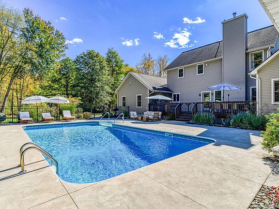 Saltwater poolNatural lightKoi pondSparkling salt water poolHome officeMultiple fire pitsFirst floor primary suite