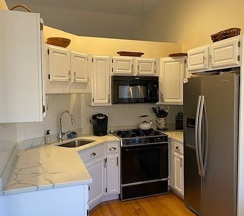 Welcome to this pristine, 3 bedroom, 2 full baths home nestled in peaceful, Ward One neighborhood. Relax in the fireplaced living room with bow window & cathedral ceiling which opens to a sophisticated dining room. French doors lead to sunroom with hardwood floors, sky-high windows and sliders that lead to tree-lined backyard. Adjacent is renovated kitchen with custom island, white cabinetry, quartz countertops and custom window treatments. The master bedroom has walk-in closet, full bath with radiant-heat floor. 2 additional bedrooms and an additional full bath complete this level. The lower level has a large finished all-purpose room. This level also has additional laundry and storage areas. One-car garage with an electric door, alarm system and newer roof. Current owner made many updates - new hardwood floors & Benjamin Moore paint throughout, new quartz countertops, custom window treatments, lighting, asphalt driveway, and landscaping. Min. to hghwy. This one won't last.