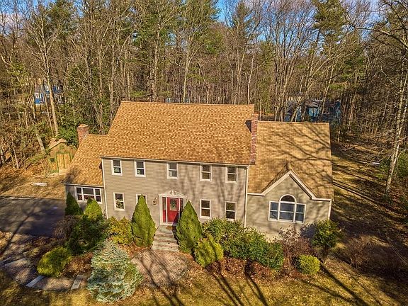 Beautiful, Spacious and Sunny Colonial is carefully sited on 2 acres within a country neighborhood. Private over size first floor Master Suite has cathedral ceiling, deluxe master bath w/radiant heat, double vanity, jetted tub, large custom tiled shower and walk in closet with room for two. Expansive Kitchen with breakfast bar, dining area, plenty of cabinets and updated stainless appliances overlooks private back yard and opens to heated 4 season room. Cozy cathedral fireplaced family room, home office/den and formal DR complete the first floor living space with hardwood and tile flooring. Fresh new carpet on second level with 3 generous sized bedrooms, children's family room or additional space for bedroom suite. Full bath with laundry and double vanity. Need more room? Full walk up unfinished attic and lower level unheated finished room for additional space. Newer Buderus boiler, Oversize storage shed, flat back yard, hiking and conservation areas nearby. Convenient to major routes!