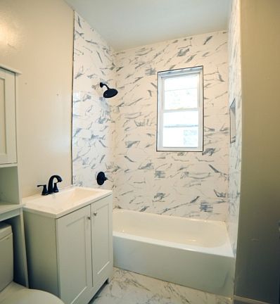 Updated eat-in kitchenRenovated bathroomHardwood floorsFull dining roomUpdated first-floor apartmentNew stainless steel appliancesFront yard