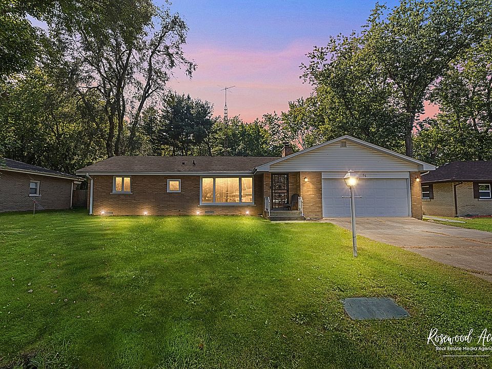 Welcome to 54 Cherry Drive! This all brick ranch home features 3 bedrooms, 1 and a half baths and is awaiting new owners. As you enter through the front door, you are greeted by a handy drop zone with a coat closet. Enter into the expansive living room with a large picture window, letting in lots of natural light and a cozy wood-burning fireplace. Next, the kitchen and dining room are a treat with an open flow between, making hosting a breeze. The kitchen features newer countertops and appliances, that all stay! The family room with the updated half bath (2016) and access to the backyard and 2 car-attached garage is off of the kitchen which offers additional entertaining space or just simply to relax and unwind after a long day. Moving down the hallway, you will find 3 generously sized bedrooms and a remodeled bathroom (2022) featuring tile floors, modern light fixtures and vanity. You won't be disappointed on cleaning day with the hardwood floors and newer wood-laminate floors that travel throughout much of the home as well as the tile floor in the kitchen, dining room, and bathroom. Enter your fenced in backyard, with plenty of outside space for entertaining. Enjoy peace of mind, with all newer windows and doors (2017), Roof and insulation (2022), Gutter and Gutter-guards (2024) and video doorbell that stays. Don't delay, call today for your showing!