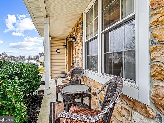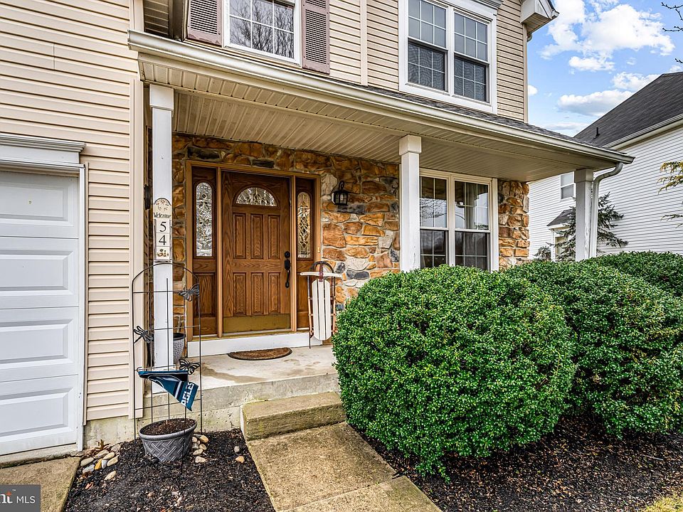 Welcome Home to 54 Colts Gait, nestled in the highly sought-after Colts Run community! With over 2,300 square feet of living space—plus a finished basement—this home offers the perfect blend of comfort, style, and functionality. As you approach, a charming front porch invites you to sit back and relax, setting the tone for the warmth inside. Step through the front door into a bright and airy two-story foyer with beautiful hardwood floors. To your right, the formal living room is bathed in natural light from expansive windows and flows seamlessly into the elegant dining room, complete with crown molding. The heart of the home is the spacious eat-in kitchen, featuring 42” upper cabinets, a center island, ample prep space, and the perfect little coffee nook. A sliding glass door leads to a fantastic backyard retreat, where a retractable awning shades the patio—perfect for outdoor entertaining. Adjacent to the kitchen, the stunning family room boasts soaring two-story ceilings, floor-to-ceiling windows, and a cozy gas fireplace, making it the perfect spot to gather and unwind. Downstairs, the finished basement is a true bonus space—ideal for a media room, game room, or private retreat. A dry bar makes it perfect for entertaining, while an additional room offers flexibility for a playroom, craft space, or home gym. Plus, there's a large storage area and rough-ins for an optional half bath. Upstairs, a spacious landing overlooks both the family room and foyer. The primary suite is a true sanctuary, featuring vaulted ceilings, a generous 19-foot layout, and a walk-in closet. Three additional well-sized bedrooms complete the second floor. With a brand-new roof and a one-year home warranty included, this home is move-in ready and waiting for its next owner. Don’t miss your chance to own this fantastic home—schedule your tour today!