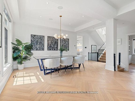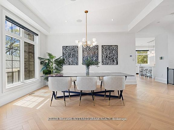 A stunning fusion of form and function, this custom-built residence showcases a design-forward aesthetic with impeccable craftsmanship throughout. Featuring white oak herringbone floors, soaring 10-ft ceilings on the main level, built-in speakers, and full smart home integration.The chefs kitchen is a showpiece outfitted with premium Sub-Zero, Wolf, and Bosch appliances, a massive eat-in island with bar sink and wine fridge, and seamlessly connected to a spacious family room and sunlit breakfast area. Custom millwork and thoughtful finishes elevate every room.The primary retreat offers a private balcony, dream walk-in closet, and spa-inspired ensuite. The 11-ft lower level impresses with an oversized walkout and a fully wired home theatre. Every inch of this home is curated, considered, and crafted to impress