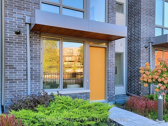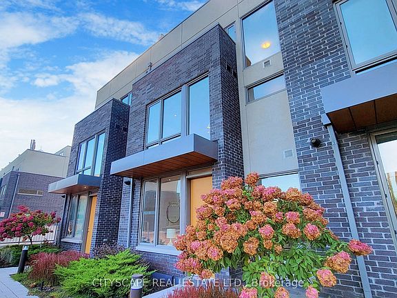Contemporary Urban living close to Woodbine Beach! 2055 sq ft of functional urban living space + 247 sft private rooftop terrace w/clear east views! 3 bedroom + large finished basement, convenient as a family room! 3 bathrooms! open concept/living dining/w/fireplace! 2nd level dedicated to master retreats/walk-in closet & 5 PC ensuite! hardwood floors throughout! Ample storage! large windows filling rooms with natural light! main floor powder room. The upper level walks out to the terrace patio and an ensuite storage locker room.