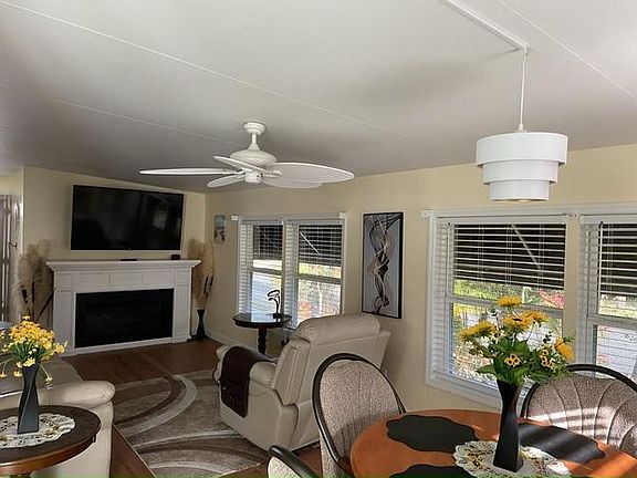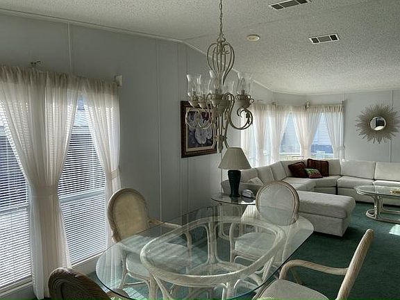 Welcome to Heron Cay, a 55+ age-qualified active and vibrant community, where you can find yourself in your dream home. We have a stunning corner lot, light-filled 2 bedroom, 2 bathroom home with: Large L shaped open concept consisting of: kitchen, dining and living room with luxury plank and tile flooring and some carpeting in the guest bedroom, tray ceilings, crown moulding and skylights to flood the home with light. Your new home also features great space and charm through a huge bonus four seasons Florida room with fireplace, huge primary en-suite bedroom with large bathroom and ample closet space, guest bedroom and bath with tub-shower, and separate laundry room with washer and dryer. At 960 Sq Ft, with an additional 250 square feet of a bonus Florida Room, there is plenty of space to entertain guests and family. It offers the perfect blend of modern amenities and timeless charm. Step inside to find a bright home with neutral walls, high ceilings, natural light, luxury tile or laminate plank floors, and a large living room that leads through sliders out to an enormous screened bonus room, The Gourmet Chef's kitchen boasts a large island for cooking, plenty of cabinetry, a dishwasher and skylights. The spacious primary suite offers a peaceful retreat, complete with lighted vanity, walk-in shower, large closets and high ceilings. A large additional guest bedroom provides versatility for guests. Outside you will enjoy premium coating on your driveway, walkways, and a corner lot setting which extends seating areas on two sides of the home. The lush landscaping features a garden and beautiful plantings around the home, making the whole home ideal for entertaining or unwinding. Located in the desirable Heron Cay Community, residents enjoy access to a range of premium amenities including on-site management, a beautiful lake, a resort-style pool, fitness center, clubhouse, banquet room and kitchen facility, tennis courts, billiards, library, shuffleboard, putting green and more. Conveniently situated near shopping, dining, major highways, free bus line public transportation, beaches and more, you'll have everything you need just minutes away. Whether you're looking for relaxation or recreation, this vibrant community has it all. Please call to make an appointment to see this lovely home at a great price. It won't last long!