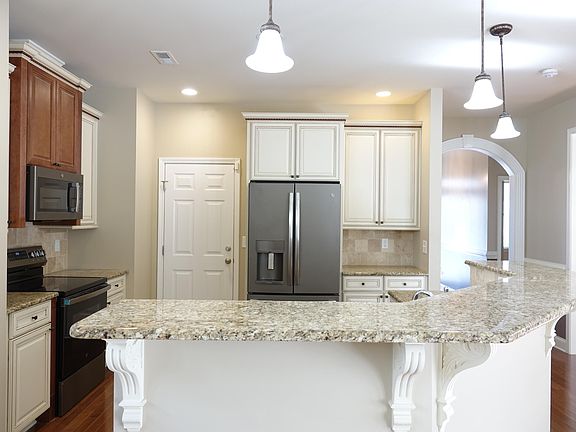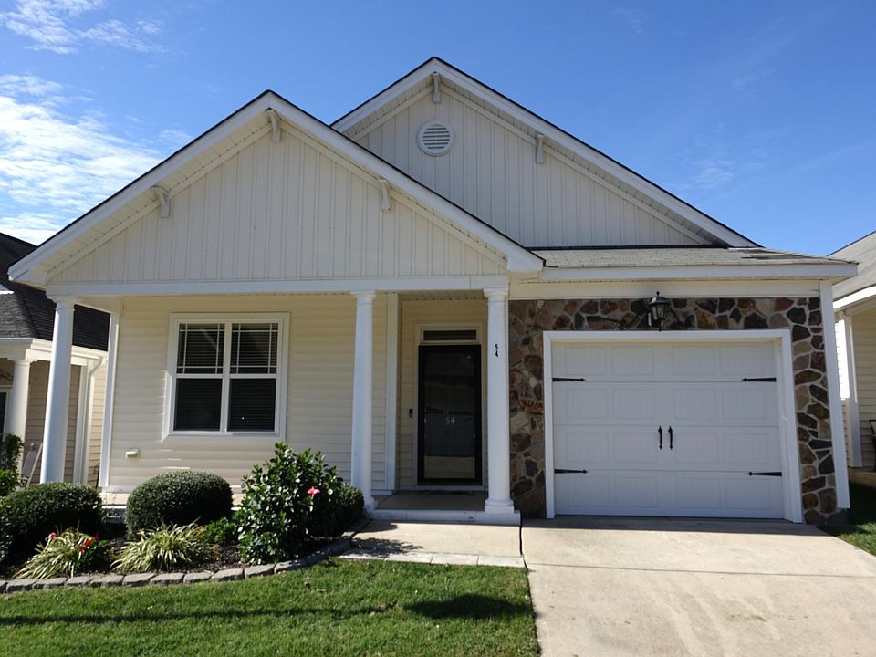 Hard to find ranch in award winning Flowers Plantation. Better than new finishes: Hardwood floors, Upgraded kitchen with tile backsplash. Large primary bedroom with adjoining bath and walk in closet. Private covered patio and large front porch. Beautiful walking trails. Exterior and Lawn maintenance covered by the HOA. Finished 1 car garage.