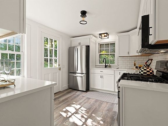 FULL OF CHARM, this MODERN UPDATED 3-bedroom Cape blends TIMELESS CHARACTER with CONTEMPORARY STYLE. SUNDRENCHED and SPACIOUS, this home features GLEAMING hardwoods and a FLEXIBLE TRANSITIONAL LAYOUT. CUSTOM NEW white kitchen is a showstopper, boasting SS appliances, QUARTZ countertops & UPGRADED cabinetry that seamlessly flows to the classic living room offering a cozy fireplace flanked by custom built-ins, while the formal dining room adds a touch of elegance—perfect for entertaining. Enjoy your morning coffee in the inviting 3-season sunroom or unwind in the SPACIOUS new primary bedroom comprising the entire upstairs, complete w/lg closet, LUXURY vinyl flooring & a dedicated office area. The updated bathroom adds a fresh, clean touch, while NATURAL GAS cooking & CENTRAL AIR ensure year-round comfort. A one-car garage provides added convenience. Located in a prime area, this home is just a short walk to the TRAIN & VIBRANT TOWN CENTER. A PERFECT BLEND OF STYLE, FUNCTION & LOCATION!
