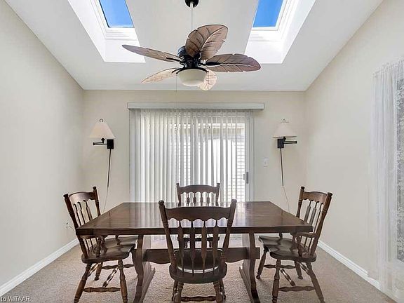 Welcome to the serene Adult Community of Hickory Hills, where comfort and convenience meet in this charming 2 bedroom bungalow. This home boasts many upgrades, including roof and skylights (2020), ensuring a peace of mind for years to come. A new walkway, outdoor steps and driveway redone in 2022 enhances the curb appeal and leads you to the inviting entrance. The kitchen features newer fridge and stove (2019), freshly painted neutral colors throughout, stunning electric fireplace and all carpets were just professionally cleaned. Accessibility features include grab bars and a walk-in bathtub providing added safety for daily routines. This property is equipped with an irrigation system, central vac, owned water heater and water softener and a humidity control system. Relax on the covered back porch, ideal for enjoying your morning coffee. Residents of Hickory Hills enjoy access to the Rec Centre complete with a pool and a host of amenities, fostering an active and vibrant lifestyle. This move-in ready home offers not just a dwelling but comfort and enjoyment! Buyers acknowledge a one time transfer fee of $2000.00 plus an annual fee of $385.00 both payable to Hickory Hills Residents Association. All measurements approx.
