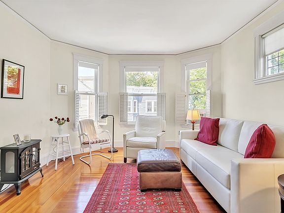 A rare, spacious, light- filled condo offers a perfect location on a one -way, tree- lined street just steps to Harvard, Inman and Central Squares and many local amenities. Main library, Broadway Market, tennis courts, park, and swimming pool are just around the corner, with MTA, restaurants, shops within walking distance. In a lovely turn -of -the century, 3- family, this treetop unit offers 3 BRs, large eat-in, country kitchen with spacious pantry, Caesar-stone countertops, SS appliances, and recessed lights. Roomy LR and DR with bay windows, pretty leaded piano window, deep built-in hutch, are divided by elegant French pocket doors. Large bath updated with Carrera marble and beadboard walls. Windows on four sides offer open, charming views in all directions, including from private deck off the kitchen. A spacious lot with mature plantings, an exclusive parking space and lovely backyard. Roof rights. This light and airy space provides a warm and serene sanctuary. A must see!