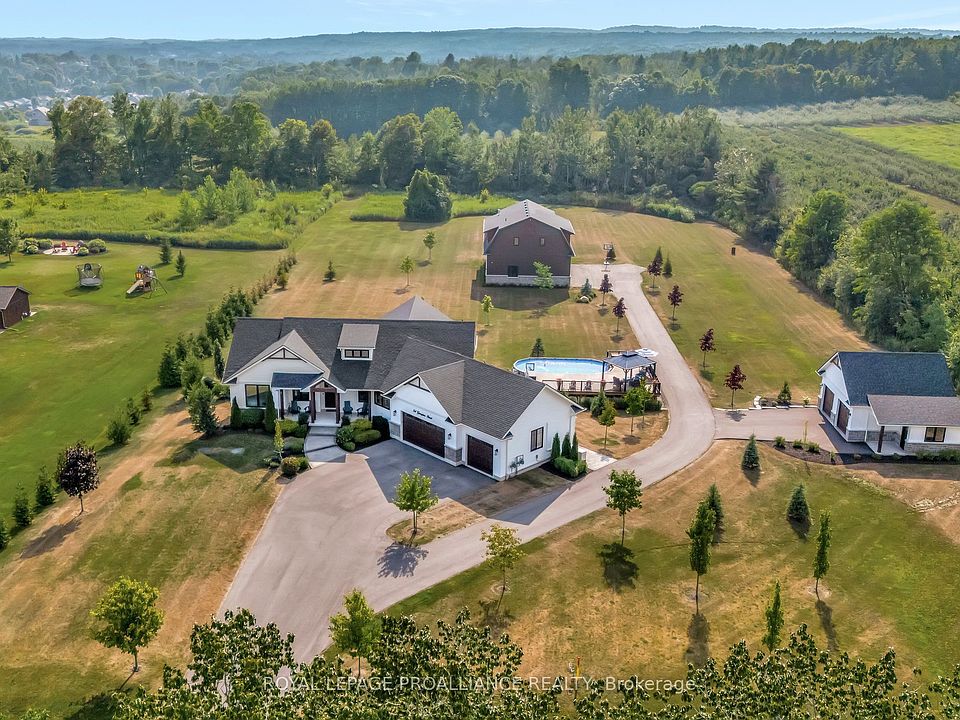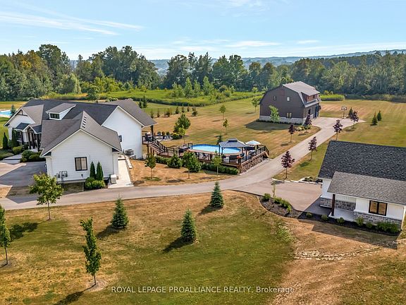Flawless family property featuring two beautiful dwellings: An impressive, craftsman style, 4 bed 4 bath, walk-out family home and a separate 2 bed, 2 bath luxury apartment with elevator, above a 1662 sqft shop. Located on the edge of the charming town of Brighton between Toronto and Ottawa, serviced by municipal water, natural gas and Fibe internet, and set on a beautifully landscaped 3.7 acre lot, this incomparable property offers versatility and luxury in a sought after location. Custom built in 2020, and offering 3200 sqft of finished living space, the 3+1 bedroom main home offers beautiful attention to detail, careful craftsmanship and is designed with the needs of a modern family at top of mind. Thoughtfully laid-out, open concept main floor is centred around a well-crafted custom kitchen with walk-in pantry. Privately located primary suite and 2 secondary bedrooms are ideal for family living. Fully finished walk-out lower level includes 4th bedroom and full bath, and features a rec room, private home office and large home gym. Enjoy the convenience of an attached 3-car garage, plus a matching detached 2-car garage- perfect for car enthusiasts or hobbyists. With seamless access to outdoor living areas the beautifully landscaped property offers a hot tub patio, extensive trex decking, poolside pergola, and interlock fire pit. Follow the paved lane way to the completely self-contained 1662 sqft shop with double 10ft doors and 12ft ceilings, that also hosts a stunning 2 bed, 2bath luxury apartment with elevator access. Stunningly appointed with vaulted ceilings, gorgeous custom kitchen and mill work, stone gas fireplace and elevated rear deck with scenic views. An extensive list of additional features and property details is available. Iconically beautiful and offering unmatched versatility and turn-key living, in a prime Brighton location, your family is sure to Feel At Home on Georgina Street.