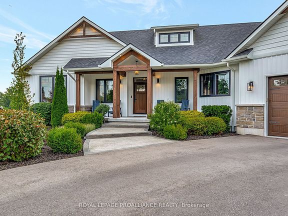 Flawless family property featuring two beautiful dwellings: An impressive, craftsman style, 5 bed 4 bath, walk-out family home and a separate 2bed, 2 bath luxury in-law suite apartment with elevator, above a 1662 sqft shop. Located on the edge of the charming town of Brighton between Toronto and Ottawa, serviced by municipal water, natural gas and Fibe internet, and set on a beautifully landscaped 3.7 acre lot, this incomparable property offers versatility and luxury in a sought after location. Custom built in 2020, and offering 3200 sqft of finished living space, the 3+1 bedroom main home offers beautiful attention to detail, careful craftsmanship and is designed with the needs of a modern family at top of mind. Thoughtfully laid-out, open concept main floor is centred around a well-crafted custom kitchen with walk-in pantry. Privately located primary suite and 2 secondary bedrooms are ideal for family living. Fully finished walk-out lower level includes 4th & 5th bedroom and full bath, and features a rec room, private home office and large home gym. Enjoy the convenience of an attached 3-car garage, plus a matching detached 2-car garage- perfect for car enthusiasts or hobbyists. With seamless access to outdoor living areas the beautifully landscaped property offers a hot tub patio, extensive trex decking, poolside pergola, and interlock fire pit. Follow the paved lane way to the completely self contained1662 sqft shop with double 10ft doors and 12ft ceilings, that also hosts a stunning 2 bed, 2bath luxury apartment with elevator access. Stunningly appointed with vaulted ceilings, gorgeous custom kitchen and mill work, stone gas fireplace and elevated rear deck with scenic views. An extensive list of additional features and property details is available. Iconically beautiful and offering unmatched versatility and turn-key living, in a prime Brighton location, your family is sure to Feel At Home on Georgina Street.