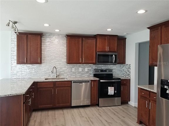 Completely remodeled pool home. In move in condition. New appliances package including washer and dryer. Brand new 2019 roof, 2019 AC, impact windows, 2020 electric panel, new garage door, freshly painted exterior and interior, new baseboards, doors and newly redone bathrooms. All new laminate flooring, new light fixtures and an electric fireplace! Brand new kitchen cabinets with granite countertops and back splash. Updated pool and new screen on the lanai. Great location close to the beaches, restaurants, shopping, golfing, kayaking.