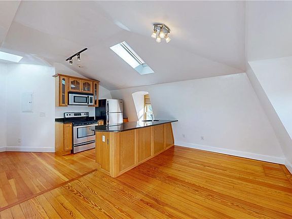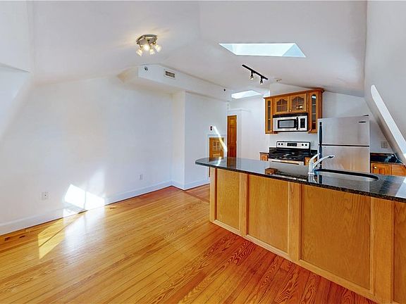 Nestled on Providence's celebrated College Hill, this top-floor one-bedroom condominium blends historic charm with modern comfort. Featuring soaring ceilings, skylights, and snapshot views of the city and State House, the residence offers a bright, inviting atmosphere perfect for today's urban lifestyle. The thoughtfully renovated interior boasts gleaming hardwood floors, a spacious open-concept living and kitchen area, and a cozy den ideal for a home office or reading nook. The large bedroom provides ample closet space, while an in-unit washer/dryer and central air ensure everyday convenience. Recent exterior improvements, including a new roof and fresh paint, underscore the building's historic character and long-term care. Residents enjoy the benefit of one assigned off-street parking space, along with included utilities such as water, refuse, snow removal, and parking. Located within walking distance to Providence's train station, downtown, Brown University, RISD, and the city's vibrant dining and cultural scene, this residence delivers the perfect blend of neighborhood charm and city accessibility.