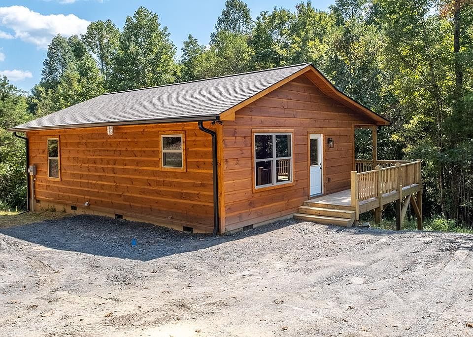 BRAND NEW CONSTRUCTION! 2bed/2bath cabin with gorgeous rough cut wood siding, metal roof, and full length covered back porch to rock away the days overlooking the view of the mountains. Large crawl space for storage and access. Step inside from your covered entry porch to an all wood, open floor plan with vaulted ceiling, lots of windows for natural light, stone fireplace, kitchen with beautiful hickory cabinets and granite countertops, hardwood floors, and central heating and air. Fiber Optic internet, too! Peaceful wooded lot situated in one of Murphy's best locations. Contact us today for more information and to come see it in person!