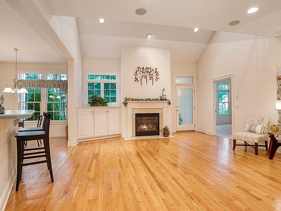 Welcome to Peaceful Living at The Woods! This beautiful 1 owner END UNIT Townhouse offers 3 BEDROOMS, Dining room w/ TRAY CEILING & recessed lights, open Concept Kitchen/dining/Livingroom, SUNROOM & 2.5 Baths! 2nd floor has LOFT AREA, large walk in room for closet or storage and plenty of space for friends & family to stay. Relax in your front porch or rear patio that overlooks wooded area. Natural GAS heat, hot water & fireplace. Fully applianced kitchen (Fridge 2025) w/ PANTRY Closet. FIRST floor Main Bedroom with 2 walk in CLOSETS, BATH & Laundry. There's gleaming hardwood flrs, Tile flrs in baths, Security system, spacious 2 CAR garage. A/C is newer- 2016 (per tag on unit). Basement is LARGE open space & has egress window. Complex has sidewalks-perfect for a morning stroll. Come See this well maintained condo & FALL IN LOVE!