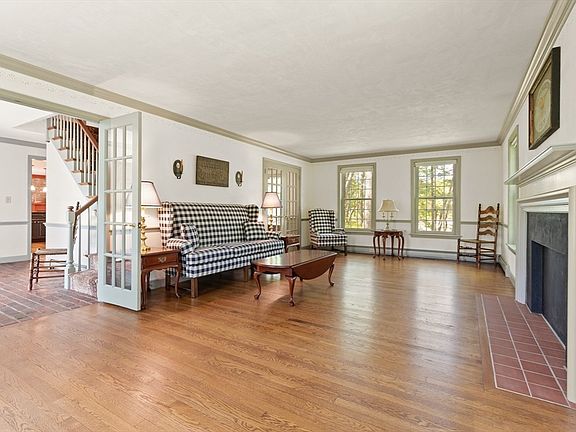 Nestled on 3+ acres in one of Boxford's premier locations, this classic Wills Colonial blends timeless elegance w/modern amenities. Hardwood floors, built-ins & tasteful updates radiate warmth & charm. Eat-in chef’s kitchen features a cozy fireplace, center island, granite, pantry & striking walnut floor. Adjacent family rm w/ gas FP leads to enclosed heated porch. Formal living & dining rooms w/architectural moldings offer inviting space for gatherings. Laundry rm & 1/2 bath complete 1st level. Upstairs boasts a spacious main bedrm & ensuite bath plus 3 additional bedrms & family bath. Bonus room above garage, w/ gas FP & built-ins, offers many possibilities. Off the bonus rm is a 2nd primary bedrm w/ensuite bath. Set back from the road, the property offers privacy w/ Four Mile Pond at its border for canoeing, kayaking & fishing. Residents also enjoy access to private tennis courts. Desirable MASCO schools. This home is a perfect blend of style and comfort in one exceptional package!