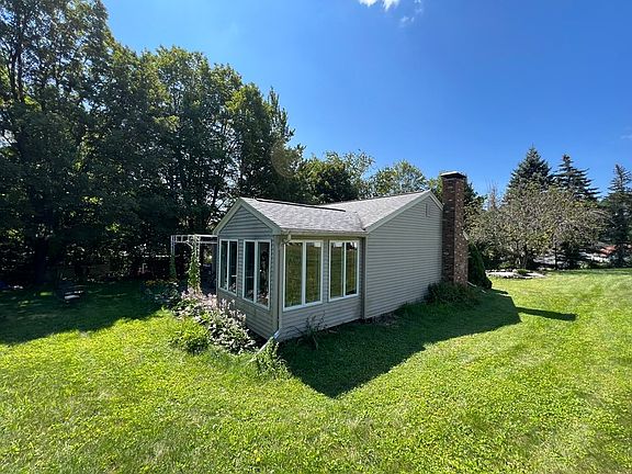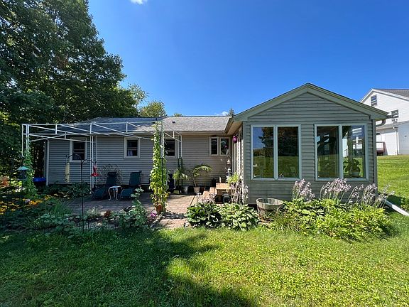 Enjoy peace & serenity while you lounge on your hammock, tend to your flower & vegetable gardens, or while sipping your morning coffee or evening cocktail on the patio! Nestled on a 1/2 acre lot abutting acres of cornfields & located less than 1 mile to the center of town, this 3 bedroom, 2 bath raised ranch has an open floor plan with hardwoods in the updated kitchen, the fireplaced living room & the dining room. French doors provide access to the 4-season sunroom featuring a vaulted ceiling, skylight, ceiling fan & a slider to the exterior. The primary bedroom has its own 3/4 bath. The semi-finished lower level offers a family room, laundry, plenty of storage & access to the 1 car garage. The seller is relocating out of state and requests some flexibility with a closing date.