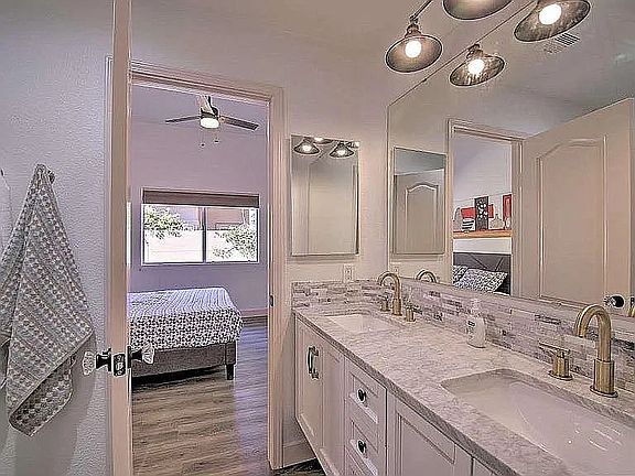 The primary suite is a peaceful retreat with its own private bath and plenty of closet space. Step outside to a cozy patio where you can unwind, enjoy the fresh desert air, or sip your morning coffee with beautiful views.