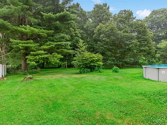 Three bedroom Cape on level one acre lot. Beautiful tree lined yard with above ground pool is perfect for these hot days. First floor has two updated full baths, kitchen with stainless steel appliances, dining room, two bedrooms and living room leading to an enclosed front porch. Another bedroom and office are on the second floor. Central air and updated 200 amp electric service. Exterior freshly painted. Make this your own home sweet home!