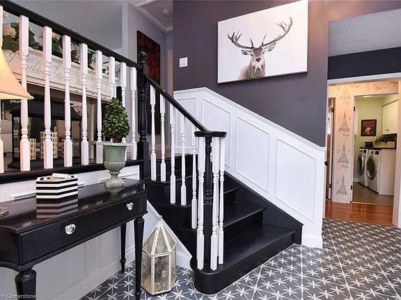 Located in a highly sought-after, family-friendly neighborhood in Cambridge, this expansive split-level home offers exceptional value and comfort. Boasting 3 spacious bedrooms and an oversized double garage, the property is set on a beautiful lot that provides a serene private retreat. Enjoy outdoor living at its finest with a two-tiered deck, large patio, lush perennial gardens surrounded by mature trees. Inside, the bright and airy family room features gleaming hardwood floors, a cozy wood-burning fireplace, and sliding doors that open to your backyard oasis. The fully renovated kitchen is a chef's dream, with modern finishes, quartz countertops, a large central island, and ample cabinetry for all your cooking and entertaining needs. The master suite offers a walk-through closet and ensuite access for added convenience and privacy. The lower level is fully finished with a spacious recreation room, a 3-piece bathroom, and large windows that flood the space with natural light. Additionally, the basement includes an extra room perfect for use as a study or games room, along with a storage area that can easily be converted into a fourth bedroom. For added convenience, there is a bonus walkout to the backyard. This home is ideally located near top-rated schools, parks, and amenities, making it an excellent choice for families. With its inviting layout and exceptional features, this home is truly a must-see. Schedule a showing today!