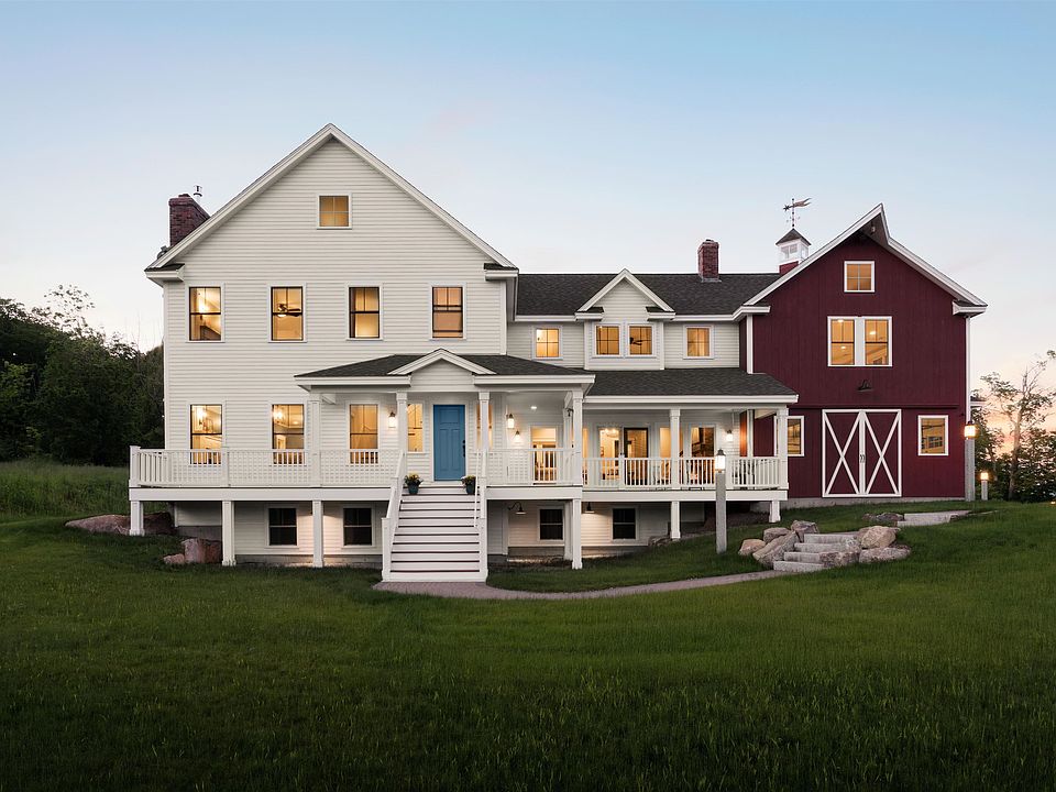 Come view this breathtaking custom built farmhouse spread across 780 acres including most of Winn mountain and it's 1,667 foot peak. The picturesque 9-acre pond, which is stocked with large bass and attracts many forms of wildlife, is perfectly framed by vibrant hardwood trees. The view can be enjoyed from the wraparound porch and large windows that brings the outdoors in. Explore miles of hiking trails & roads throughout the property for a peaceful and private retreat. The 2016 Farmhouse has 5 bedrooms and 5 bathrooms, one of which is a bunkroom with approximately 730 sq. ft that has a 3/4 bath and sleeps up to 6 with plenty of room to spare. Primary suite includes gas fireplace, multiple walk in closets and a full bathroom with vintage tub, shower and 2 vanities. 3 large bedrooms and full bathroom with custom tile shower walls and flooring completes the second floor. The inviting kitchen is made up of soapstone counters, imported Aga dual fuel range from England with custom tile backsplash, wood burning fireplace and stainless steel appliances. The first floor has 2 more wood burning fireplaces with 2 half baths, large dining room, living room and family room. Mudroom and laundry room are directly off the 3 car attached garage with an additional 1 car garage under the historical barn and a 5 car garage in the detached barn with electricity and storage. Home is equipped with Generac propane generator, underground propane tank and two 250 gallon oil tanks.
