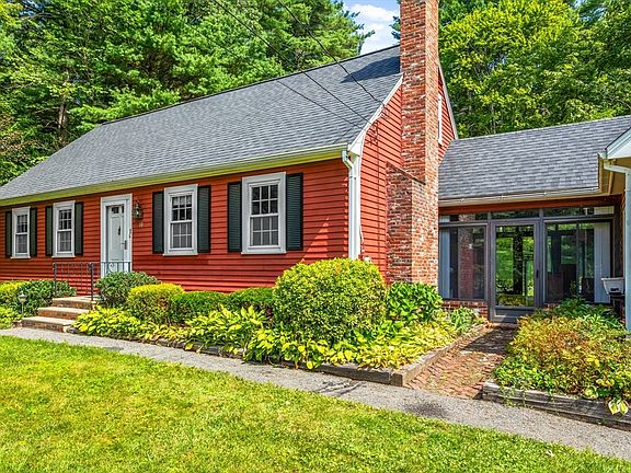 This picture perfect Cape Cod style home offers timeless charm with 2085 sq ft, 4 beds, 2 full baths, fireplaced living room, eat-in kitchen, and fantastic lower level family room/fun room with bar and thoughtful built-ins. An expansive deck (partially covered) and 3 season porch overlook a serene and private .93 acre oasis perfect for enjoying the beauty of mature gardens, fruit trees, a peaceful water feature and the natural buffer of abutting conservation land/trails. Loving cared for by its original owners, the home boasts a 1 yr old roof, young Buderus gas boiler, fresh interior paint, hardwood, an enormous 20 x 12 storage shed, attached garage, and is generator-ready. This is truly a very special property with incredible potential to make it your own!