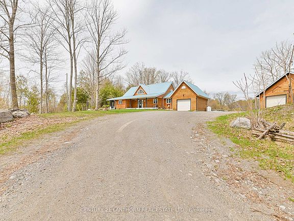 Looking for some privacy? Check out this beautiful country setting with 30 acres just north of Madoc. A winding private driveway leads you up to this hilltop setting and log home with lots to offer. An inviting front porch a great spot to take in the view. Boasts many custom features, including a stunning floor to ceiling stone fireplace with propane insert as the center piece. Main level features the master bedroom with 3pc ensuite, a 4 pc bath, kitchen with ample cabinetry and a center island and access to the laundry room and attached garage, plus the back yard deck with sunk in hot tub and above ground pool. Don't forget the spacious screened in porch area, a great spot to entertain. 2 More bedrooms on 2nd level plus a lounge or office area. Full finished basement with a walkout to the back yard, and also has a rec room, pool table room with wet bar, 4th bedroom, full bath, plus lots of storage. A heated 28x32 detached garage/shop is a crowd pleaser and also has an addition at the back for additional storage. Outdoor wood furnace installed in 2016, plus a new electric furnace in 2025, plus a metal roof on 2021. Close to numerous lakes and recreational trails in the area. A convenient location 5 minutes from Madoc and about 2 hours to Ottawa or Toronto. Please note, some photos have been digitally staged.