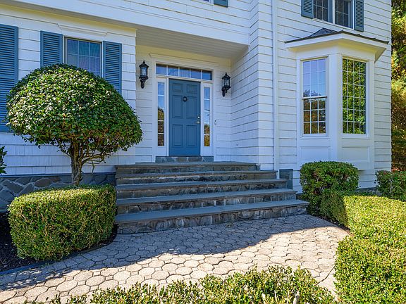 Graciously set in one of Southbury's most coveted neighborhoods, this exceptional 4 Bdrm Colonial just shy of 5000 sqft offers striking curb appeal paired with a sense of privacy, blending timeless architectural elegance with modern luxury. From the moment you enter the grand two-story foyer, you're welcomed by finely crafted details including a sweeping central staircase & formal living & dining rooms that provide an ideal setting for gatherings. At the heart of the home, the dramatic two-story great room showcases an elegant stone gas frplc, 2nd story retractable sun shades creating a warm & inviting atmosphere in any season. The adjacent butler's pantry with wet bar & wine cooler makes entertaining seamless. The bright & spacious chef's kitchen offers a wonderful culinary space & features a center island, gas cooktop & all-new stainless steel appliances-including double wall ovens, refrigerator, microwave & dishwasher. A sun-drenched breakfast area surrounded by windows invites you to linger. Step outside to an expansive bluestone patio, complete with a retractable awning and a fully fenced backyard-perfect for relaxing, dining, or play. The outdoor living space is a seamless extension of the home's thoughtful design. Upstairs, the luxurious primary suite offers a tranquil retreat with a soaring carousel ceiling, an oversized walk-in closet, private dressing room & a beautifully updated bath with jetted tub & walk-in shower. The 2nd Bdrm features its own Ensuite Bathroom.. while the 3rd & 4th bedrooms are connected by a Jack-and-Jill bathroom. A laundry area, a spacious walk-up attic & a balcony overlooking the great room complete the upper level. The finished lower level adds flexible living space with a fitness room, utility areas, and a large recreation room with walkout access-ideal for a media space, playroom, or guest area. Adding to the home's curb appeal and sense of arrival, the property features a Belgium block-lined driveway with a lovely apron detail at the entrance, creating an elegant first impression. Flanked by classic stone walls and anchored by a distinguished stone pillar mailbox, the approach sets the tone for the quality and quiet privacy found within. A heated, oversized three-car garage offers practicality with style, while the home's distinctive front balcony adds a final touch of architectural charm to this already captivating residence. This remarkable home offers a rare combination of elegance, comfort, and craftsmanship in a truly premier location ideally situated close to all town amenities, Kettletown State Park and Interstate 84 atop of Lake Zoar. Pride of ownership abounds! Come experience the difference at 54 Lake Ridge Road.