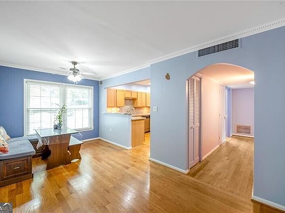 You will love the location and amenities that gated Cross Creek offers! Almost stepless entry with just a few steps to the front door and parking available directly outside the unit. Super convenient for grocery runs! Hardwood floors are in the main living space including the spacious living room that flows effortlessly between solarium and dining room for easy entertaining! The renovated kitchen features maple cabinetry, stainless appliances, breakfast bar and granite countertops. The primary suite has a walk-in shower and water closet with pocket door. 2 generously sized bedrooms with great closet space complete the unit. The Amenities at Cross Creek are second to none! There are 3 pools, an 18-hole, par-3 executive golf course with pro-shop, 4 tennis & pickle ball courts, a gym (additional $30/month,) cafe and bar, and over 2 miles of road within the gated entrance. The prime location makes getting anywhere a breeze. You are close to 75, 285, 85 & 400, Buckhead entertainment district, Vinings Jubilee, Midtown & Downtown. The airport is a quick 15 minute drive. Several (5) Publix's are within 2 miles of Cross Creek.