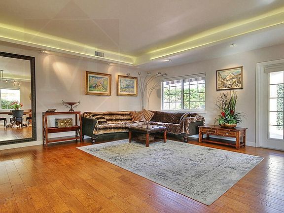 This stunning 3 bedroom, 2.5 bathroom home has recently undergone a complete rebuild & reconfiguration, transforming the original tract home into a chic & private modern estate. Enjoy luxury that combines the elegance of a traditional home with modern amenities, quality construction, & neighborhood charm. Highlights include a chef's kitchen with stainless steel appliances, Central Heating and Air Conditioning, raised ceilings, recessed lighting, hardwood floors, two fireplaces, large master suite with walk-in closet and jacuzzi tub, guest bathroom with steam shower, 2 large storage sheds, private yard, carport with automatic gate, new electrical, new plumbing, and lovely mountain & setting views.