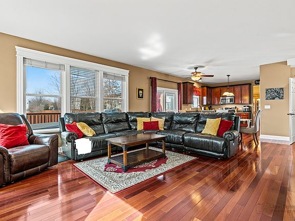 Welcome to this stunning 4-bedroom home, offering incredible sunset views and the privacy of no homes directly behind! The spacious backyard is perfect for entertaining, featuring a large deck, a screened-in gazebo, and a relaxing hot tub. Inside, enjoy an abundance of natural light pouring through brand-new windows. The home boasts a fresh feel with a new front door, patio door with built-in blinds, and a newly installed garage door. The entire exterior has been freshly painted, adding to the home's curb appeal. Other upgrades include a new water heater, new refrigerator, and new dishwasher. Laundry is located on the first floor with a new washer and dryer. Hardwood floors flow throughout the first floor, creating a warm and inviting atmosphere. Enter the primary suite through the double doors at the top of the stairs. It features a closet with the most amazing organization. Don't miss the opportunity to make this beautiful home yours!