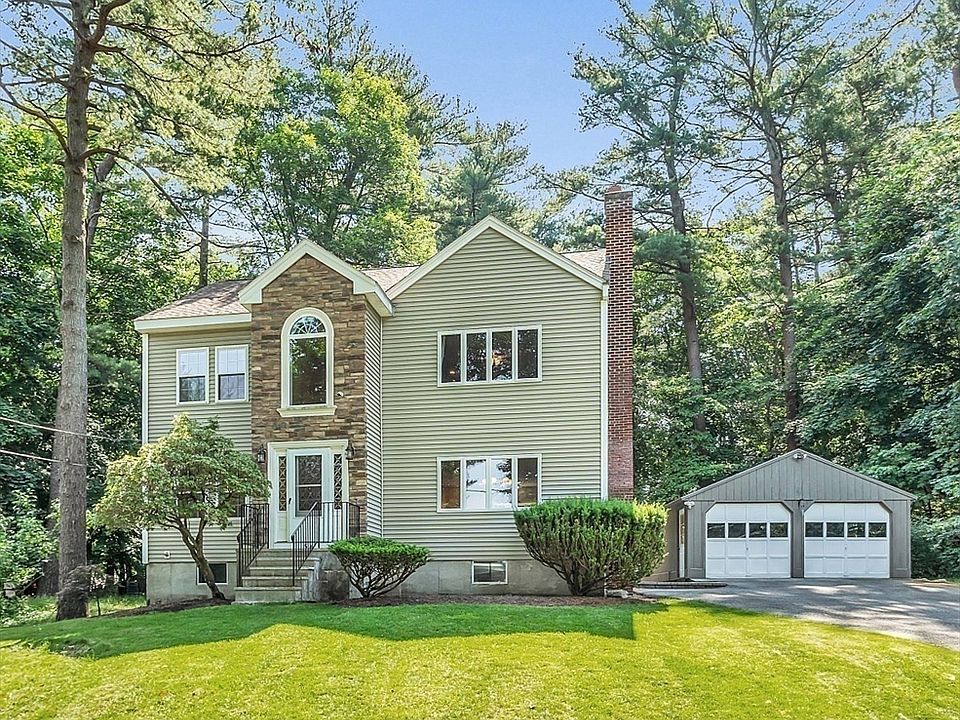 Welcome home to this lovely Colonial with open floor plan for today's style of living! You will love preparing meals in the gourmet kitchen with cream cabinetry, granite counters accented with stunning riverstone backsplash, center island, wine fridge, peninsula with pendant lighting all open to a spacious dining room with fireplace. Family room is large and open with plenty of room for hosting family and friends. Convenient office on the first floor plus half bath. The second level offers a primary bedroom suite with walk in closet and spa like 3/4 bath with tiled shower stall, double sink vanity. Two additional bedrooms with adjoining full bath plus walk in laundry room and great loft space. Hardwood floors throughout, central air, security, 2 car detached garage, brick paver patio with fire-pit overlooking private yard. Attic and basement for storage. Enjoy all that Lynnfield has to offer with top rated schools, close to major routes and Market Street for shopping and dining!