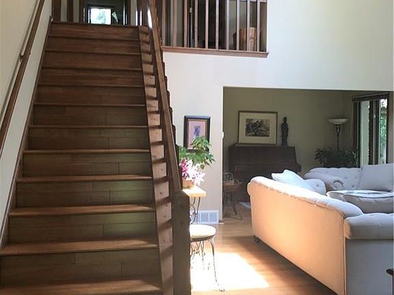 Pristine & meticulously updated 4 Br, 2 full bath contemporary home. Gleaming Bamboo floors in living/dining, kitchen & 3 BR's. Cathedral ceiling, skylight, large windows & WB fireplace in the spacious living/dining room. The eat-in kitchen opens to the family room that features a cathedral ceiling, oak floors, WB stove, skylights & loft area. Large deck off family rm over looks the beautiful private fenced yard. 1st floor BR w/large closet. 1st floor full bath. An electric stove, cathedral ceiling, 2 large closets, desk, 2 sky lights & sliding door to balcony in 4th BR. Main bath w/shower & vaulted ceiling. Spacious secondary Bedrooms one w/a door to a balcony. Glass block windows, laundry area & storage galore in basement. Shed. Roof '05, Furnace '15, H.W.T '06, A/C'19 & more! Shows A++