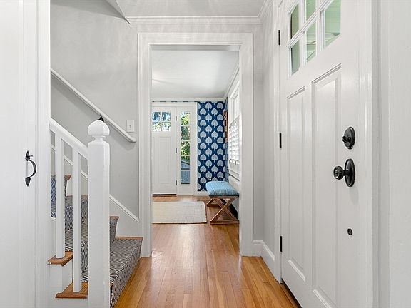 A classic center entrance colonial, beautifully renovated with 4 bedrooms and 3.5 baths. The first floor features a mudroom, powder room, spacious living room, den, and first floor office or playroom. A dream kitchen renovated in 2019 includes new countertops, backsplash, refinished floors, and pendant lighting. Refrigerator, dishwasher, and Viking range have all been replaced in the last 3 years. Laundry room connects to the attached one-car garage with ample storage. The second floor includes a primary suite that was added on in 2016, three additional bedrooms, two more full baths, and a bonus room/office. The lower level features a finished family room with expansive storage. The exterior of the home offers a level, private yard and a state of the art outdoor kitchen, with a fireplace and built-in Napoleon gas grill. Additional features include plantation shutters, central air, hardwood floors, wrap around front porch, shed, irrigation, and 2 wood-burning fire places. Welcome Home!