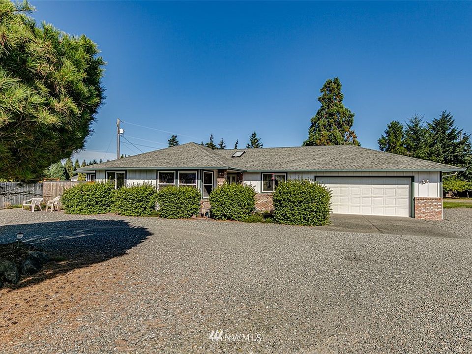 Sunny Sequim Rambler ready for a new owner! Home has 1,650, 3 beds/2bath, master has large walk in closet, attached 2 car garage, detached garage for extra storage space and RV parking. Custom covered patio w/ recessed lighting extends off of dining room for year round entertaining. Fruit trees, sprinkler system and privacy with the fully fenced gated yard. Open layout vaulted ceiling, separate office/den with coffered celling. Home is centrally located close to all Sequim amenities and move in ready.