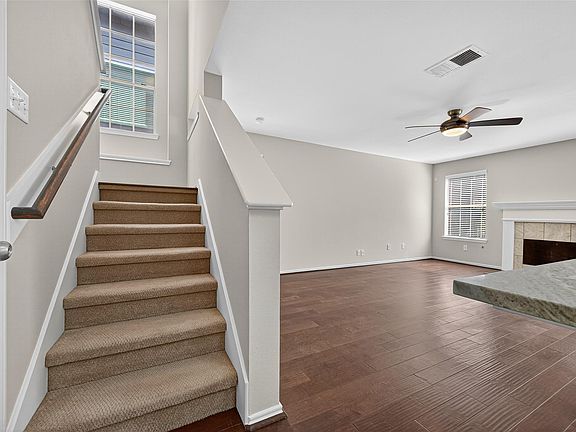 Charming Townhome in Village of Alden Bridge, The Woodlands Discover this lovely townhome nestled in the sought-after Village of Alden Bridge, offering an unbeatable location and top-rated Conroe ISD schools. Featuring beautiful wood floors on the lower level, an open-concept layout, and high-quality appliances, this home is designed for comfort and style. Updated Kitchen, and bathrooms with beautiful finishes.The patio which was also updated, is perfect for entertaining or enjoying family gatherings. Upstairs, you'll find a spacious primary suite with an en-suite bath, double sinks, and a separate shower. The owners have also added an extra AC unit upstairs ideal for those hot summer days! Additional highlights include a two-car attached garage, a new washer and dryer, and a refrigerator included. Don't miss this fantastic opportunity location, location, location!
