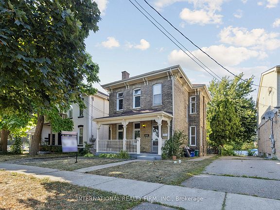 Fantastic opportunity to own a fully detached, 6-bedroom residence just steps from the end of a quiet, traffic-calmed street and minutes to Downtown Brantford. Offering two updated, separately metered 3-bedroom units, this property is perfect to live in one and rent the other, or lease both for maximum income. The charming turn-of-the-century façade pairs beautifully with modern upgrades, including airy 10-ft ceilings, newer windows (2021), roof (2021), furnace (2020), water heater (2021), toilets (2021), backwater valves (2021), sewer line (2021), and shed (2021).A spacious backyard provides excellent functionality for storage or the potential addition of a detached 2-car garage. Conveniently located near Brantford General Hospital, child care, Wilfrid Laurier University Campus, parks, and local amenities. Whether for investment or multi-generational living, this well-maintained property delivers location, charm, and income potential.