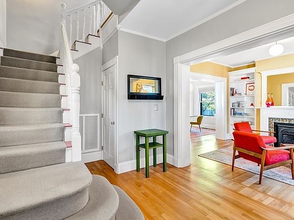 BEAUTIFULLY RENOVATED, HISTORIC HOME right in the heart of Davis Square on a quiet, tree-filled street! 3 LEVELS OF LIVING SPACE & INCREDIBLE SUN-FILLED ROOMS! Fall in LOVE w/the CREATIVE CUSTOM DESIGNED KITCHEN w/ window seat nook, open to the dining area w/access to a PRIVATE FENCED IN GARDEN. The wide front porch opens into an elegant foyer w/staircase & custom stained glass window. Newly refinished wood flrs, a gas fireplace & high ceilings. This home is so special. Plenty of space w/4 bdrms, incl. primary suite w/RADIANT HEATED BATHROOM FLOOR, two 3rd flr bdrms w/skylights, cathedral ceilings & a 2nd flr home office. The blue stone patio & driveway, off street parking, & fenced yard all make for beautiful living. Copper & slate roof (2015), fully upgraded systems, updated bathrms & more...A MUST SEE! Discover life in one of Money Magazine's "Best Places to Live in America in 2022!" Stroll to Davis Sq., North Cambridge, & Porter Sq. Easy commute by foot, bike, or public transit!