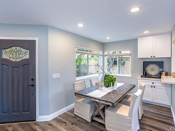 Nestled in the highly sought-after Glenwood Park community, this meticulously remodeled 2 story, end-unit condo invites you in with a custom-designed front door adorned with beveled glass. The chef-inspired kitchen is equipped with recessed lighting, white shaker cabinets, soft-close drawers, quartz countertops, stainless steel appliances, stainless steel sink and a reverse osmosis filtration system. Ample counter space and storage make it ideal for creating delicious family meals. Experience tranquility in the living room with its vaulted ceilings and a gas fireplace featuring a surrounding custom tile and mantle. Step out through the sliding glass door to the backyard, where you'll be greeted by a serene view of the nearby greenbelt with lush trees, creating a peaceful atmosphere to enjoy a glass of wine at the end of the day. Energy efficiency and sound insulation are ensured with newer dual-pane windows throughout. Luxury vinyl flooring grace the downstairs, while new carpet enhances the upstairs. The downstairs bathroom has been tastefully remodeled. Upstairs, the primary bedroom offers high ceilings, a ceiling fan, and a spacious layout with beautiful views. The master bath boasts dual sinks, new fixtures, and a walk-in shower, accompanied by an adjacent cedar-lined walk-in closet. The secondary bathroom showcases a custom vanity, sink, and light fixtures. Completing the package is an attached two-car garage. A short walk through the community park leads to outstanding facilities, including a swimming pool, jacuzzi, tennis courts, workout room, tot lot, and a spacious community center. The home is just minutes away from the Aliso Viejo Town Center, walking, biking, and hiking trails, Blue Ribbon Schools, making Aliso Viejo one of Orange County's most desirable communities.