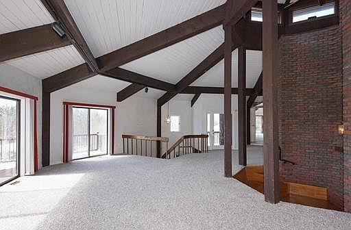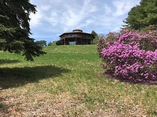 Amazing rare Octagonal contemporary with beautiful scenic views and situated on hilltop 1.4 acre lot. Looking for an open floor plan, this house is it!!! The angled living room with cathedral ceilings is highlighted by a sunken fireplace pit with bricks soaring to the ceiling. The formal dining area is conveniently located near the sunny white kitchen with island and sparkling granite counter as well as a pantry. The master with angled walls and hardwood floors is adjacent the large master bath with shower and Jacuzzi. The walk-out lower level has large family room with wet bar, reading area, 2 bedroom sharing a full bath. The sunny tiled mudroom offers laundry area and large walk in closet. The attached garage with work area has attic storage. Many other attributes include Kohler back up generator, plumbed for central vac, and heat unit in garage, new carpeting throughout, 8' heated driveway adjacent garage. This is a fine example of mid-century modern!