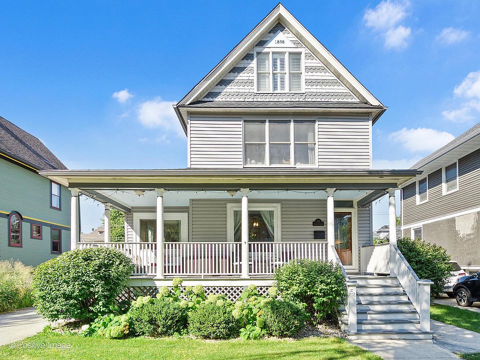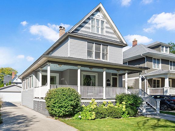 Welcome to La Grange living at its finest! This beautifully maintained 3 bedroom, 2.5 bath three-story Farmhouse blends historic charm with today's most desired updates. Nestled in the heart of La Grange, this home showcases its original wood trim, crown-molded formal living and dining room with a cozy fireplace. Start your day in the 1st floor office/sunroom or the light filled updated kitchen. Two full floors of bedrooms feature extra large spaces and each floor has a full bathroom. The basement recreation area is connected to extra storage and a laundry area. The outdoor space is amazing! Sip your coffee on the wrap around front porch or relax on the newer brick patio in the large backyard. Many updates completed including a kitchen renovation(2024) roof, siding, gutters (2021) and a new garage (2023). Plus many more improvements see attached sheet. Walk to train, schools, and downtown.