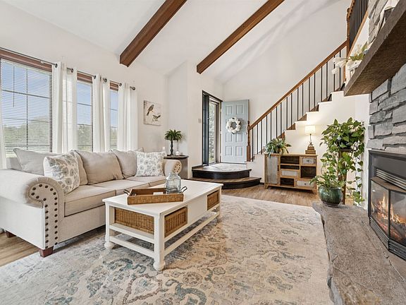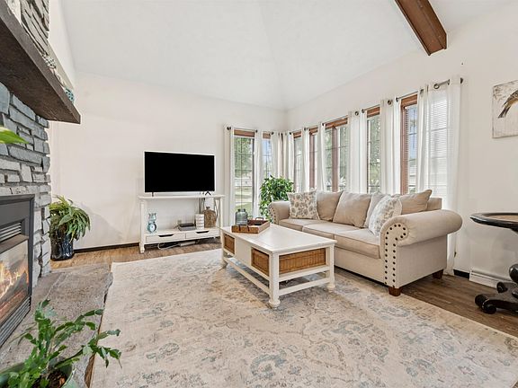 Lots of Updates! 2 story home with vaulted ceilings, open staircase and gorgeous stone gas fireplace. 3 bedrooms, 2.5 baths, spacious kitchen with appliances included and walk-in master closet. Under-cabinet lighting in kitchen, main floor laundry, formal dining room with full wall windows/doors to the backyard. Family room on lower level. Composite deck, patio, shed and garden area with waterfall and pond. Large yard for privacy and entertaining. 3 car garage with access to basement and extra parking area on side of garage. Workroom in garage for hobbyist with A/C, plumbed for furnace and has filtered ventilation. Radon system installed in 2021, new water heater, updated light fixtures and flooring, backup sump pump, roof and gutters in 2024 and invisible fence system.