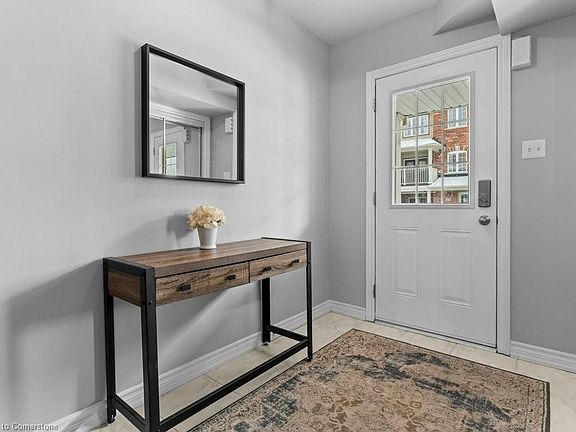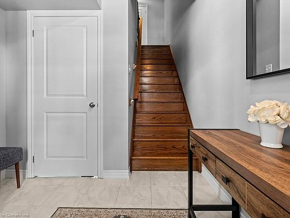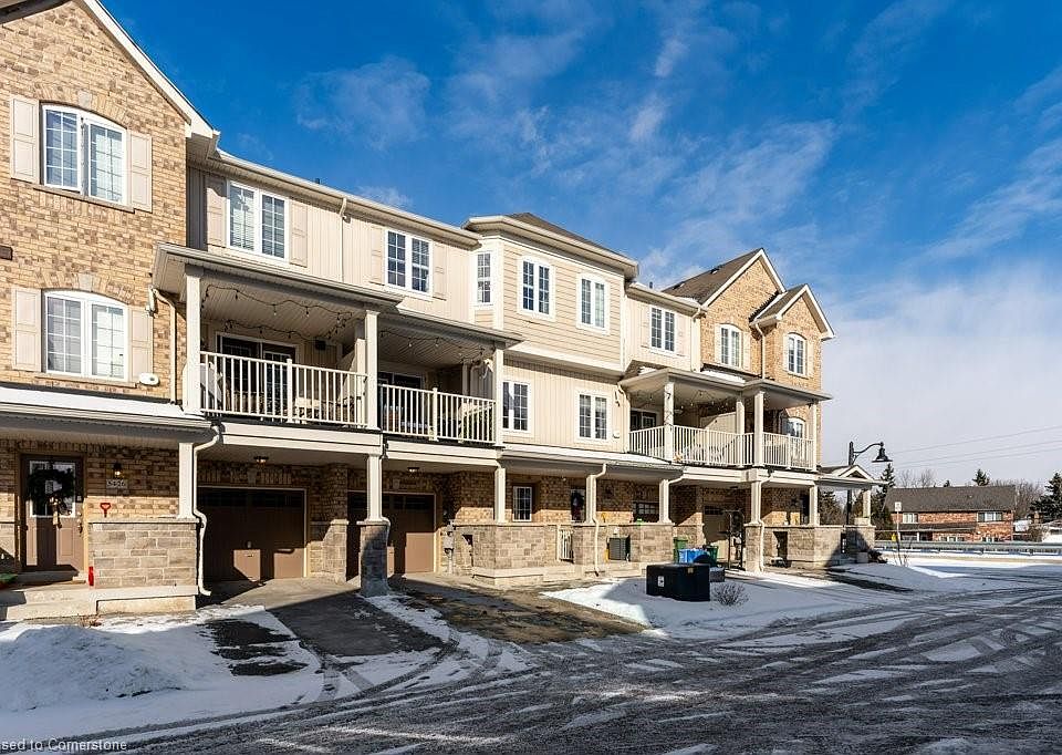 Nestled on a private, dead-end road on the edge of Waterdown is a fantastic community of townhomes waiting just for you! Built in 2017 and upgraded in the past 5 years, this charming two-bedroom townhome with one and half baths is perfect for those seeking comfort and convenience. The home features a bright, spacious, open-concept layout, including a dining area, a cozy living room and modern kitchen. The kitchen is complete with stainless steel appliances, a sleek subway tile backsplash, and quartz counters. Rich hardwood floors carry throughout most areas of the home and are accentuated by the solid hardwood stairs. From the living room you can step outside to your private covered deck - an ideal spot for relaxing with a coffee or barbecuing dinner. The upper level features an oversized master suite with a large walk-in closet and ensuite privilege to the main bathroom. The secondary bedroom is also a great size, and the upper level is rounded out with a double wide linen closet. In addition to parking one in the driveway, the attached garage provides another parking spot along with loads of storage space, and inside entry to the laundry room. Steps to Memorial Park, minutes to the town centre, close to shopping, you'll enjoy easy access to shops, restaurants, and all the local amenities you need. Enjoy the best of both worlds - a peaceful, move-in ready home with great neighbours, and quick access to all the conveniences. Don't miss out!