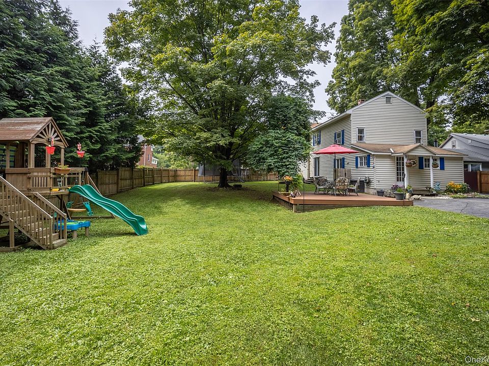 Nestled in the charming Village of Plesant Valley, this 3 bedroom, 1 Full and 2 Half bath exudes character and timeless appeal. As you step inside, a gentle warmth envelops your feet creating an immediate sense of comfort from the heated tile flooring. Continue to find spacious living areas, perfect for gatherings, showcasing gleaming flooring and natural light. The eat in kitchen retains its vintage style with updated appliances. An updated half bath and large laundry room complete the main level. Choose from 2 staircases that lead upstairs to find 3 generously sized bedrooms. The primary bedroom includes a walk-in closet and half bathroom. Relax or party in the perfectly manicured yard with mature trees, floating deck and fence. Need a separate space for projects? You'll be surprised by the 24'x36' garage ideal for a workshop and storage. A 12'x26' deck leads to a bonus room that can be finished for a variety of uses. Updates include but are not limited to: New oil tank and furnace - November 2024, New well pressure tank - August 2023, New electric water heater - July 2023, Alarm system, Water softener, Whole house water filter. The home is walking distance to the quaint town of Pleasant Valley with its local shopping and restaurants plus a short commute to the Taconic State Parkway, Metro North Trains, Eastdale Village Town Square with its trendy boutiques and fabulous dining. Don’t miss this opportunity to own a unique piece of Dutchess Counties history while embracing today’s lifestyle.