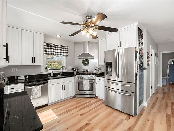 Welcome to this stunning Cape Cod-style home,move-in ready with numerous updates!This spacious 3-bedroom, 2-bathroom residence features a large kitchen and dining area equipped with Quartz countertops and stainless steel appliances, including a new propane gas stove.Step through double French doors onto the outdoor composite decking, overlooking a beautiful in-ground pool, complete with a new tool shed and pool house bar.The landscaped backyard is perfect for entertaining, featuring a fire pit patio and a fenced-in vegetable garden.Inside, the first-floor master suite has been recently remodeled, showcasing hardwood flooring and a luxurious bathroom with a large tiled shower and a cozy sitting area with Mitsubishi mini split.The oversized 4-car garage includes a finished bonus room with skylights, perfect for a workshop or office.Additional features include a WiFi-controlled alarm system, Ring doorbell cameras, and a great location near major highways for easy commuting.