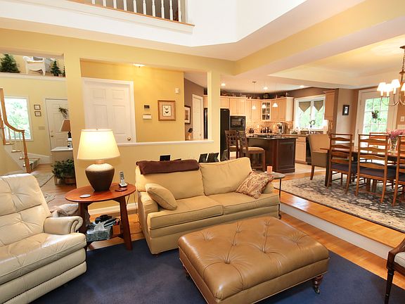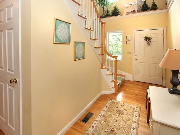 Just Gorgeous! One of a kind Custom built Contemporary/Colonial w/priv setting in sought after neighborhood, Hdwd flrs throughout 1st flr, Bridal staircase to 2nd flr. Designr light fixtures throught. Sunken great/fam rm w/18 ft ceiling. Flr to ceiling brick fp w/custom built cabinetry. Atrium doors to backyd. Custom cabinets in kitchen with granite counters, center island w/gas cooktop separate custom designed pantry and double ovens. Tray ceiling in dining rm with bay window with views of stone walls and private backyard. 1st flr master w/tray ceiling & atrium doors to yard. Walk-in closets with built in hampers. Mstr bath has cathedral ceiling/crown molding/chandelier/custom cabinets/plantation shutters/Jacuzzi tub/neo-angle showr. Mstr bdrm/bath/fam rm/dining rm/patio wired with stereo amplifiers. Lndry with utility sink/wd cabinets. Central Vac, sec sys, walk-in attic. Priv Bckyd w/stone walls/fence has firepit w/custom stone work. Reeds Ferry Shed & custom landscaped.