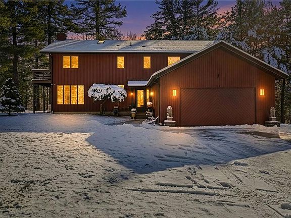 Experience the perfect blend of modern architecture and serene lakeside living in this stunning contemporary residence, nestled on a private 2.69-acre lot with panoramic views of Waterman Lake. The foyer welcomes you with new, cohesive flooring that flows into a sophisticated formal dining room and a dramatic sunken living room. This impressive space features a floor-to-ceiling stone wood-burning fireplace and glass sliders leading to one of several outdoor viewing decks. The refreshed, kitchen is a chef’s delight, boasting new appliances, a stylish backsplash, a coffee bar, a breakfast nook, and an adjacent sunroom. ?The second level serves as a true sanctuary. The primary suite features soaring vaulted ceilings, a bespoke walk-in closet, a remodeled luxury ensuite, and a private balcony overlooking the glistening lake. Three additional guest bedrooms, a second full bath, and a cedar-lined walk-in wardrobe complete the upper floor. The finished walk-out lower level offers excellent flex space for a media or playroom, plus a dedicated workshop. ?Significant recent updates provide total peace of mind: new roof, new Mitsubishi heating/cooling pump (2nd-floor zone), new well water pump, new appliances, updated flooring, fresh paint, and modern light fixtures throughout. The expansive driveway provides ample room for many vehicles and a boat, complemented by a 2-car attached garage and a maintained sprinkler system. This is a rare opportunity to own a turnkey modern retreat.