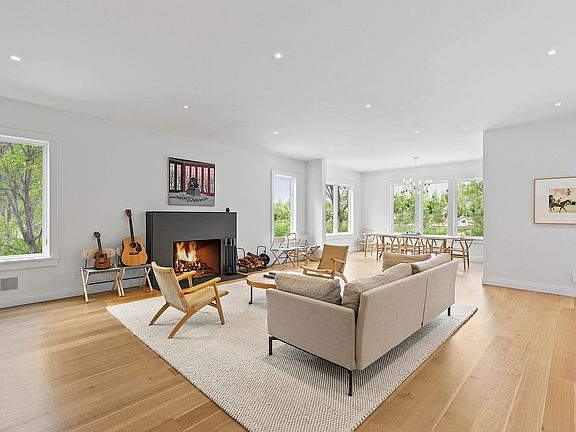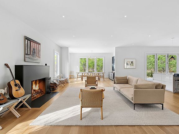 Located in Bridgehampton, and just 2.5+\- miles to the Village of Sag Harbor, this open, airy retreat features 5 bedrooms with 5 full and 2 half baths across 5,000+\- sf. The sophisticated modern farmhouse has been expertly crafted and is sited on an impressive 4+\- acre setting that affords complete privacy and tranquility. Large expanses of glass and elegant terraces throughout foster stunning views of forest and field. An open floor plan provides a large living room with fireplace, formal dining area, and professional chefs kitchen with a center island workspace and casual counter dining for 4. On the second level, a primary en suite with fireplace and terrace also includes a soaking tub, double sinks and walk-in closet. Two additional en suite guest rooms as well as a dedicated laundry room are offered. The lower level includes a guest bedroom, powder room, and a sauna with additional unfinished storage space and a mechanical room. A heated gunite pool is bordered by a bi-level stone patio with a pergola. Additional amenities include a free-standing 2 car garage with studio space and full bath.