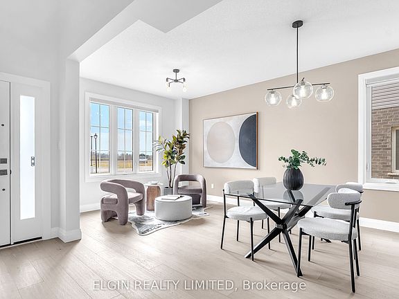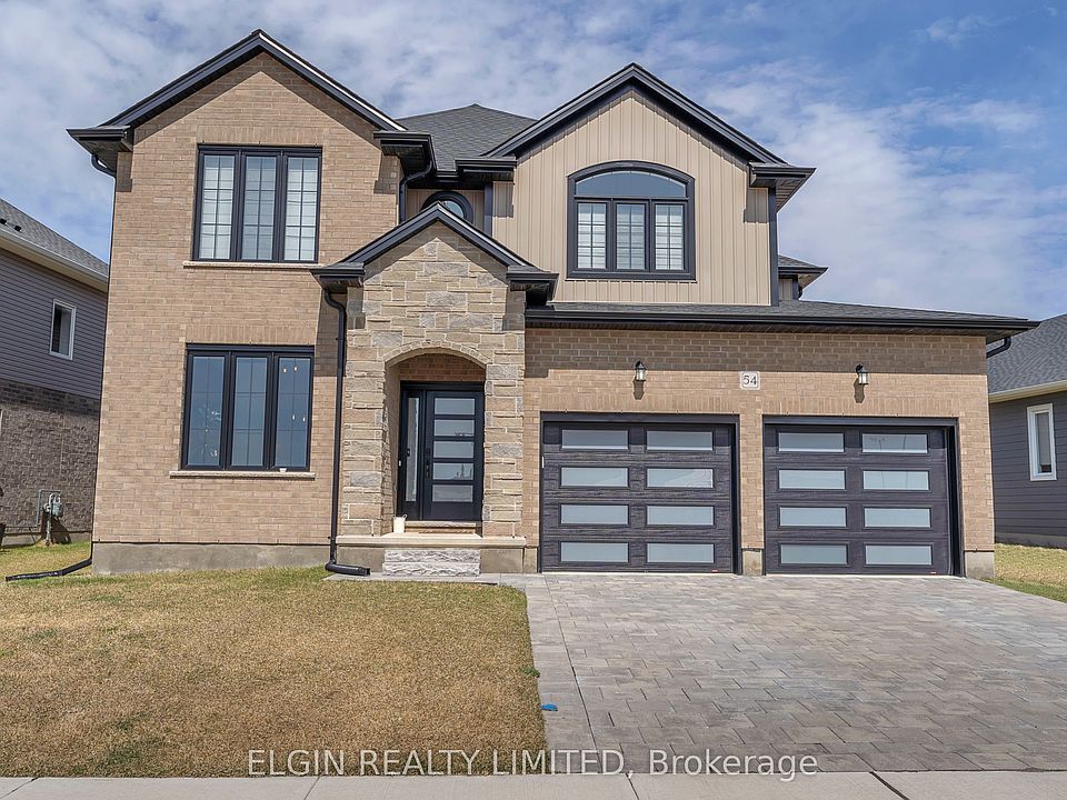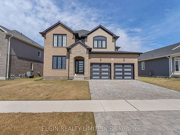 Combine modern luxury, a stunning layout and sought after location and you will arrive at 54 Optimist Drive in Talbotville. This four bed, four bath custom built Don West home features an open concept floor plan that is nothing short of wow!! Spacious and bright living and dining areas with large windows, fireplace, a vaulted ceiling and designer kitchen with upgraded cabinetry and island. Patio doors off the kitchen lead to your deck and backyard space. Laundry is conveniently located in the main floor mud room off of the double car garage. Upstairs you will find four large bedrooms- primary bedroom with walk-in closet and 5 piece ensuite, two bedrooms that share a Jack and Jill 3 piece bathroom, another bedroom with a 4 piece ensuite. Basement has development and in-law suite potential with large egress windows making it great additional living space if required. The front of this home overlooks a park in a great family neighbourhood centrally located between St.Thomas and London and is close to the 401.